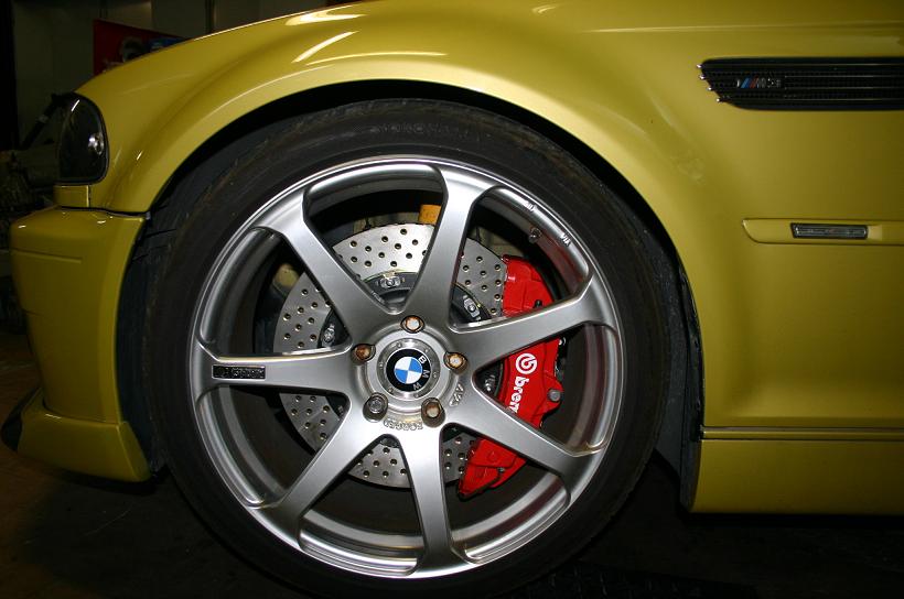 それにしても、E46M3ともなると、このくらいのブレーキサイズがあまりに自然すぎる姿なので一度装着してしまうともうノーマルキャリパーの姿には戻れませんね・・・(笑)