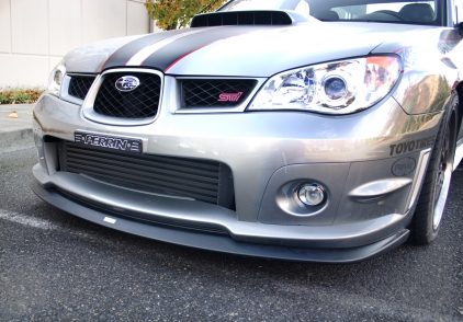 →GDB専用設計のフロントインタークーラーキット。国産ブランドの製品ももちろん高性能ですが、こちらはGDB専用サイズのコアなので、バンパーの開口部にぴったりサイズ。しかもノーマルのバンパーリーンフォース部分にセットする専用ステー付なので取り付けが楽になっています。レスポンス悪化を最小限にする設計ながら400馬力オーバーも対応です。特筆すべきはその重量。約5キロとこれまでの製品にくらべると半分近い重量。フロントオーバーハングのこの差は重要です。