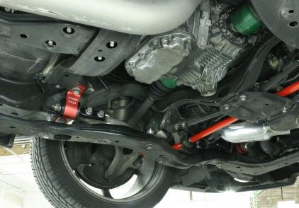 →純正のゴムブッシュから大きくハンドリングのダイレクト感を変化させるだけでなく、キャスター角の変更でサーキットなどのコーナリングでの踏ん張りが違います。