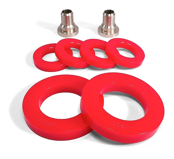 →クロスメンバーをボディとリジット固定化するカラーと前後のデフマントを強化するブッシュカラーのセット。リアの周りのブッシュ強化はこれにて完璧です。リア周りのダイレクト感が向上してリア周りの動きがわかりやすくなります。大掛かりな作業の必要ない挟み込みカラータイプ。