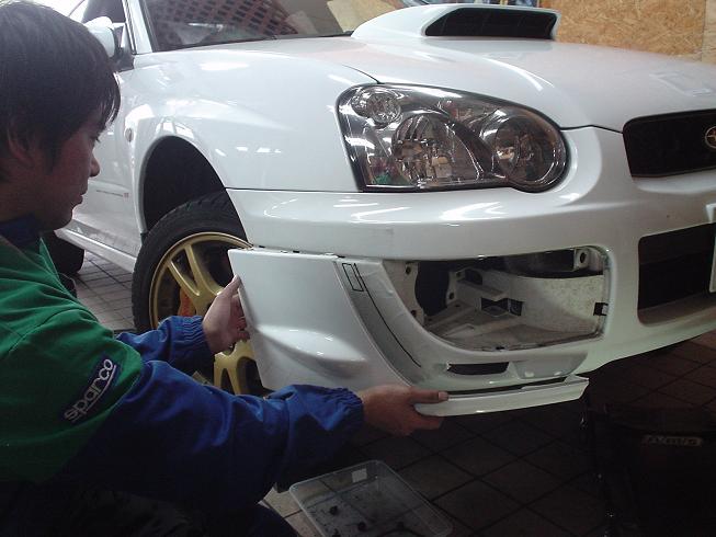 とは言うもののスペックCはこれがなく“つるん”としたバンパーフェース。リップスポイラーを取り付けるには、まずサイドスポイラーを装着!
