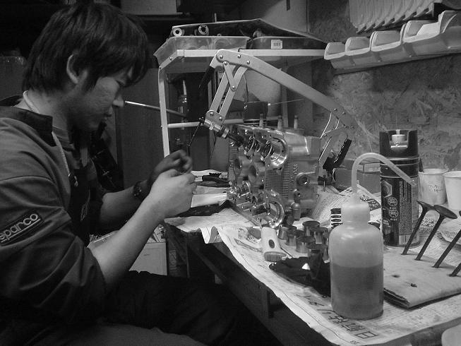 GGBエンジンのヘッド部分の作業風景。