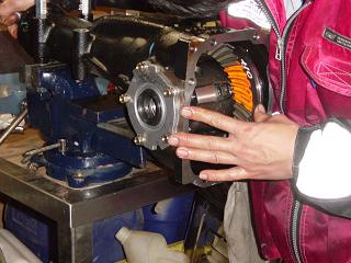 ターボの前に取り付けれるリストリクタ-。これは吸入空気量を制限してパワーに上限をもうけるためのパーツ。グループNでは現在Φ32。これがある限りどうやってもパワーはノーマル車より出ない。特に高回転は全く廻らず。シフトアップのタイミングも最近は6,000回転手前。