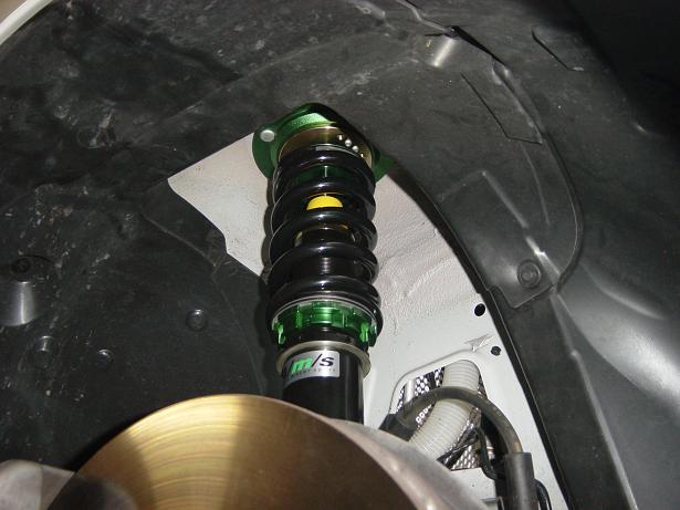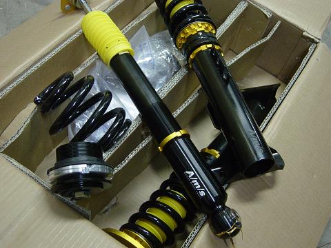 重量車といえばそうですが、でも前後バランスがいいので前重量は見た目ほどでもないし・・でもストラットのデザイン上、ものすごくショックの容量(ストローク、ピストン径、オイル量)を確保しにくいんですね。