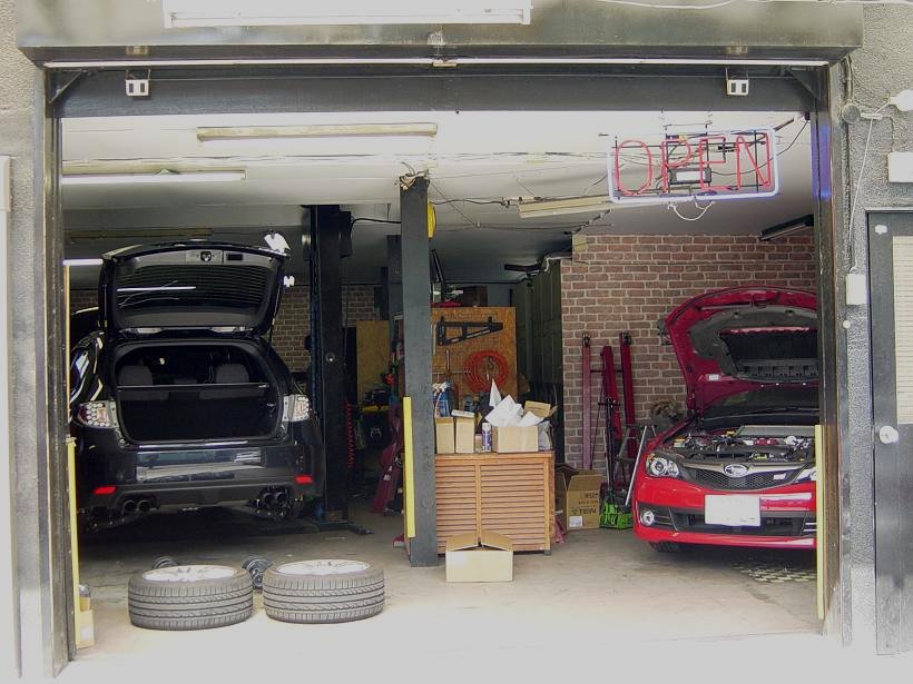 普段はスバルが多いA/m/sのガレージ。