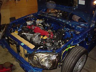 内装はだいぶ組みあがり、エンジンが乗った状態。エンジン付近はノーマルのままです。(2004/9/25)
