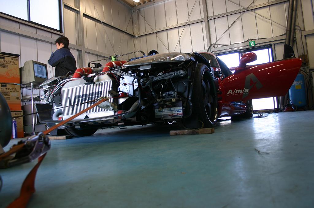 新品エンジン、ターボ、そしてツインターボ化してからまだほとんど走行していないマシンなだけに、いきなりいくのはまずいですからね。・・というか、1000馬力以上を計測しようとしたら、まず測定機探しが必要です(笑)。