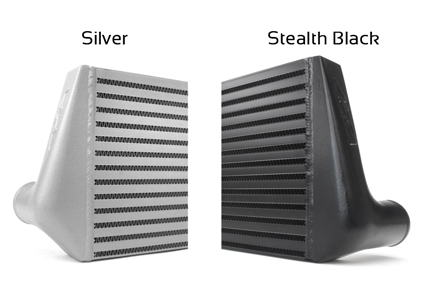 →GRB専用設計のフロントインタークーラーキット。国産ブランドの製品ももちろん高性能ですが、こちらはGRB専用サイズのコアなので、バンパーの開口部にぴったりサイズ。しかもノーマルのバンパーリーンフォース部分にセットする専用ステー付なので取り付けが楽になっています。レスポンス悪化を最小限にする設計ながら400馬力オーバーも対応です。特筆すべきはその重量。約5キロとこれまでの製品にくらべると半分近い重量。フロントオーバーハングのこの差は重要です。
