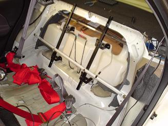 GDBのスペックCに純正で装着された巨大なインタークーラーウォータースプレー用水タンク。容量は12リットルなので夏場の高負荷走行では威力を発揮します。リアに置くことで重量配分もよくなります。ノーマルの5秒ちょろちょろ噴射よりも別手動スイッチで噴射しっぱなしにするのがお勧め。それにしてもこのタンク、水を給水するのが至難の業。ちなみにこのクルマはリアタワーバーも入っているのでさらに困難。とりあえず蓋を加工することで事なきを得ました。(2004/11/29)