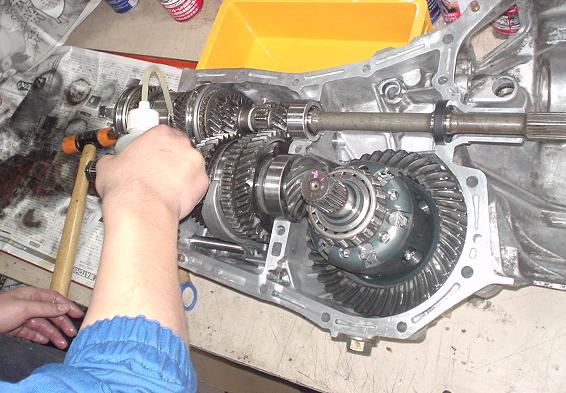 ダート系競技車へのフロントLSD組込み。持ち込みの中古LSD(クスコRSタイプ)でしたが、まだ発展途上?なドライビングを考慮して初期アンダーの少ない弱めで組込み。また1速でギア抜けがあるようで消耗部品も交換。
