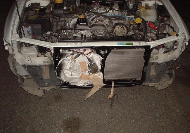 フロントバンパーをカッコいいエアロバンパーにすると開口部が大きいだけあって、いままで気がつかなかったフレームが妙に不自然に目立ちます。